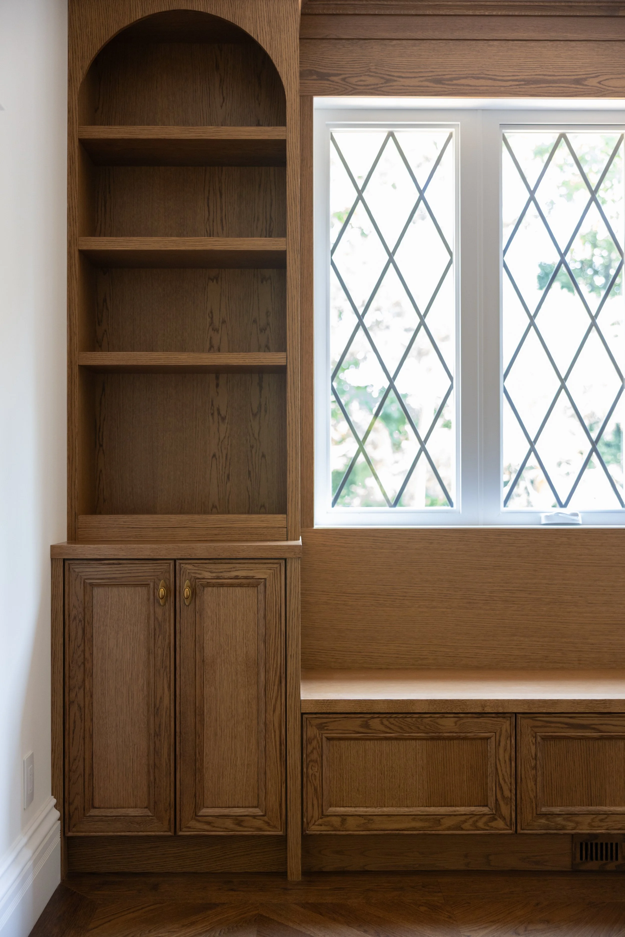 Flooring: Carpet was replaced with site-finished oak laid in a chevron pattern, reinforcing the home’s traditional character.
